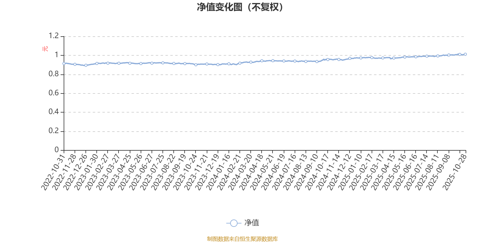 该基金属于偏债混合型基金。截至10月28日,单位净值为1.011元。基金经理是孙丹,目前管理的7只基金近一年均为正收益。其中,截至10月28日,大成民享安盈一年持有混合A近一年复权单位净值增长率最高,达7.63%;大成景尚灵活配置混合A最低,为4.22%。