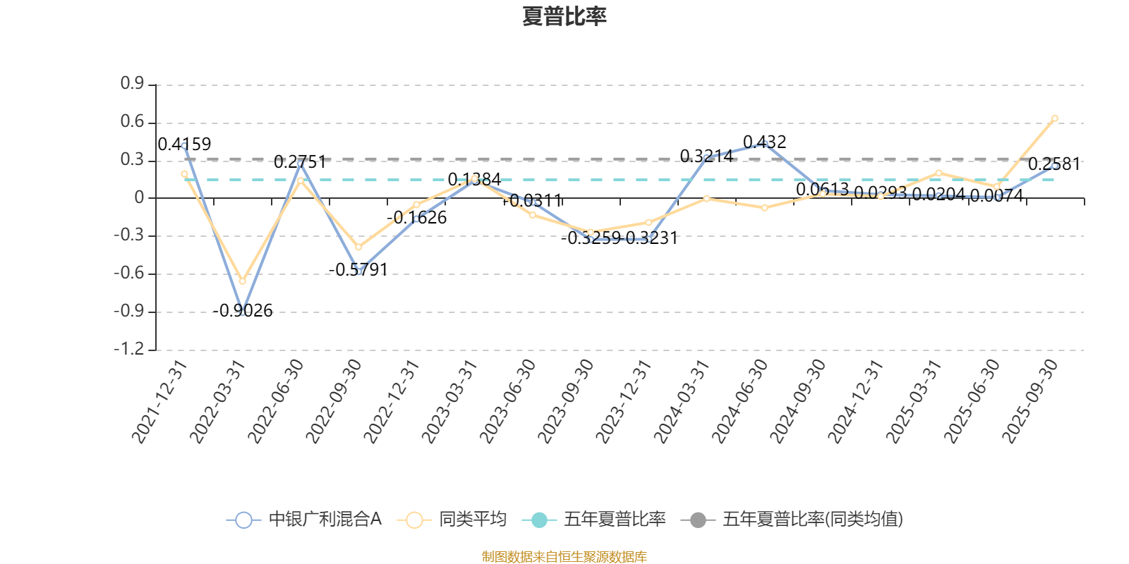 截至9月30日,基金近三年夏普比率为0.1259,位于同类可比基金1097/1285。