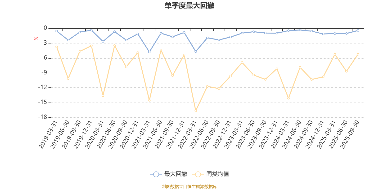 截至10月27日,基金近三年最大回撤为1.87%,同类可比基金排名12/1274。单季度最大回撤出现在2021年一季度,为4.78%。