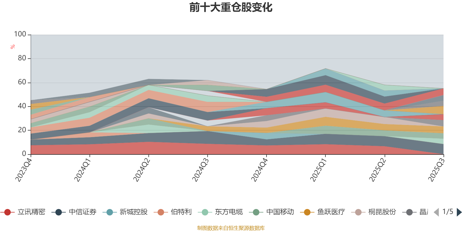 截至2025年三季度末,基金十大重仓股分别是中信证券、乖宝宠物、鱼跃医疗、伊利股份、晶晨股份、海康威视、晶澳科技、中国移动、东方电缆、中航光电。