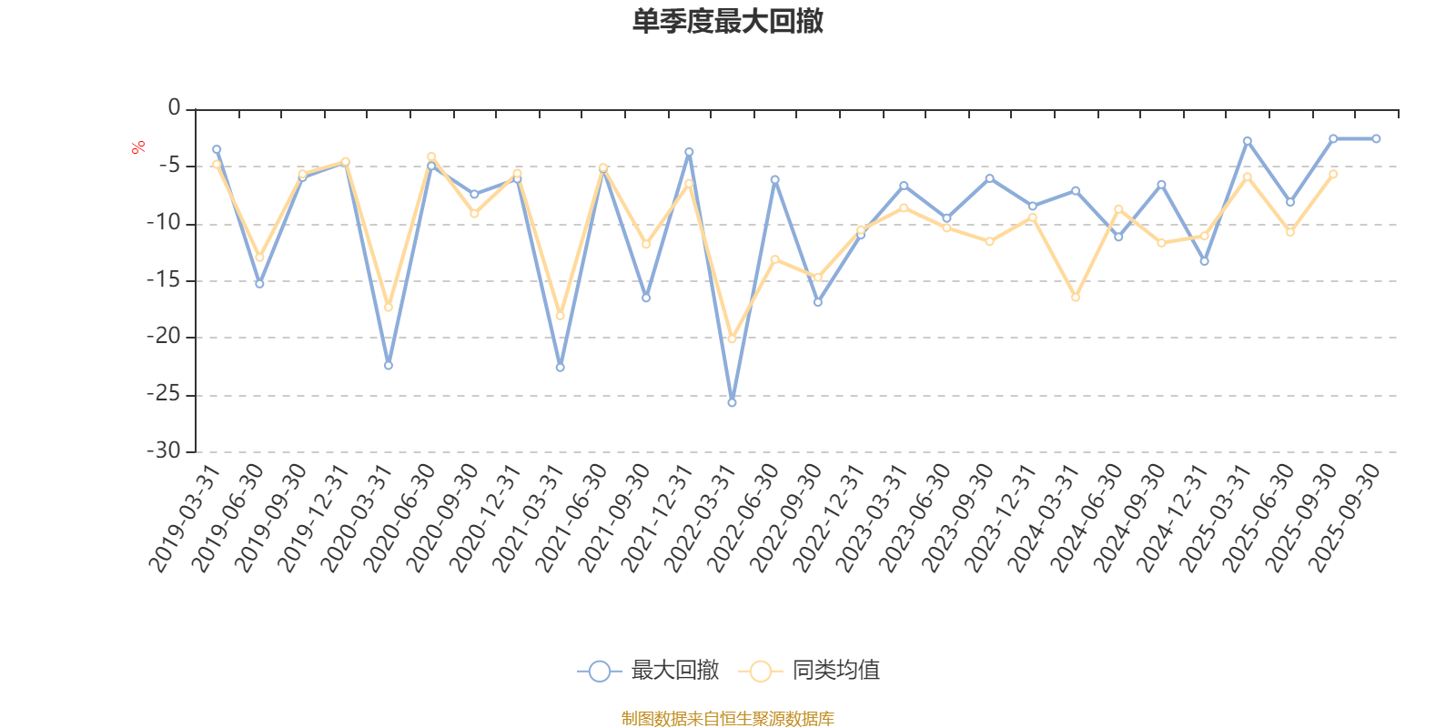通过所选区间该基金净值增长率分位图,可以观察该基金与同类基金业绩比较情况。图为坐标原点到区间内某时点的净值增长率在同类基金中的分位数。