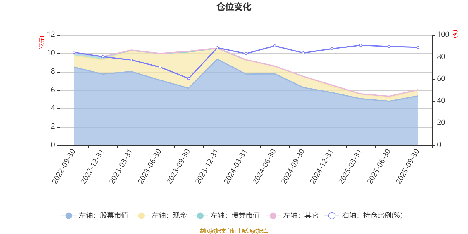 据定期报告数据统计,近三年平均股票仓位为82.69%,同类平均为86.77%。2025年一季度末基金达到90.78%的最高仓位,2023年三季度末最低,为60.62%。