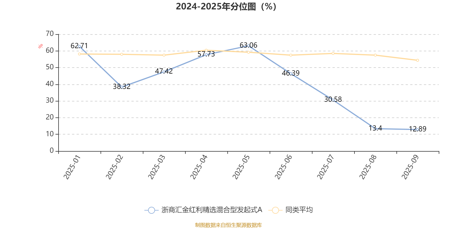 通过所选区间该基金净值增长率分位图,可以观察该基金与同类基金业绩比较情况。图为坐标原点到区间内某时点的净值增长率在同类基金中的分位数。