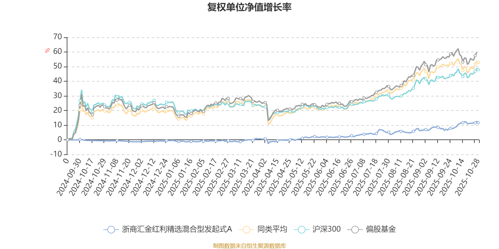 截至10月28日,浙商汇金红利精选混合型发起式A近三个月复权单位净值增长率为6.05%,位于同类可比基金531/689;近半年复权单位净值增长率为11.15%,位于同类可比基金622/688;近一年复权单位净值增长率为12.38%,位于同类可比基金531/653。
