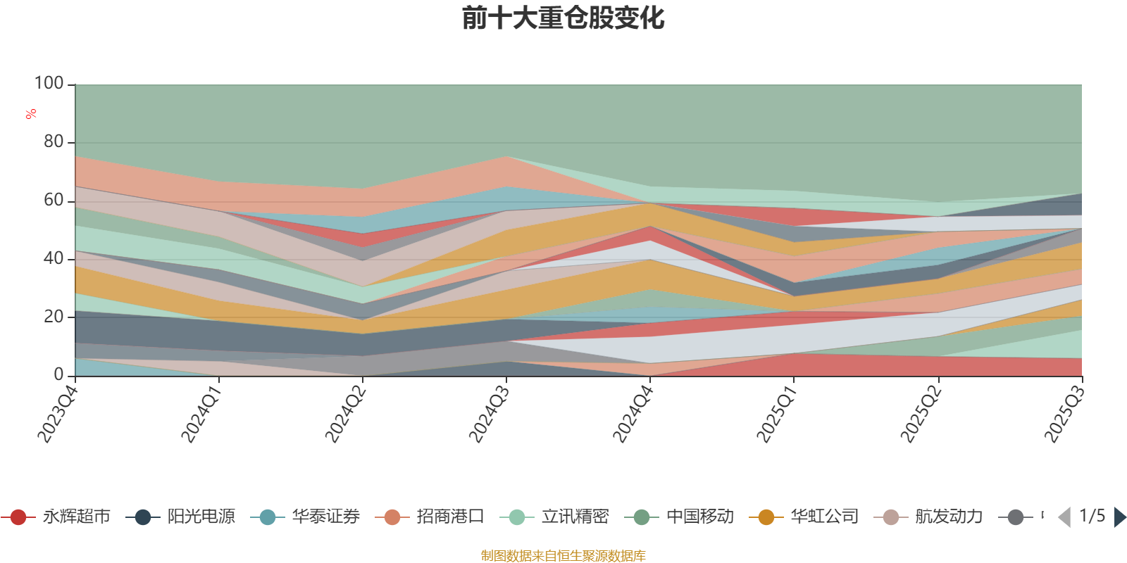 该基金持股集中度较高。截至2025年三季度末,基金十大重仓股分别是立讯精密、中兴通讯、山东黄金、永辉超市、华虹公司、中航沈飞、美的集团、中国移动、生益科技、江淮汽车。