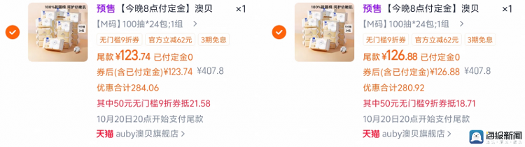 左图为凑单付款价格,右图为单独付款价格