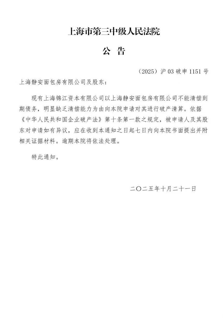 海量财经丨静安面包房被申请破产 多家门店已关闭