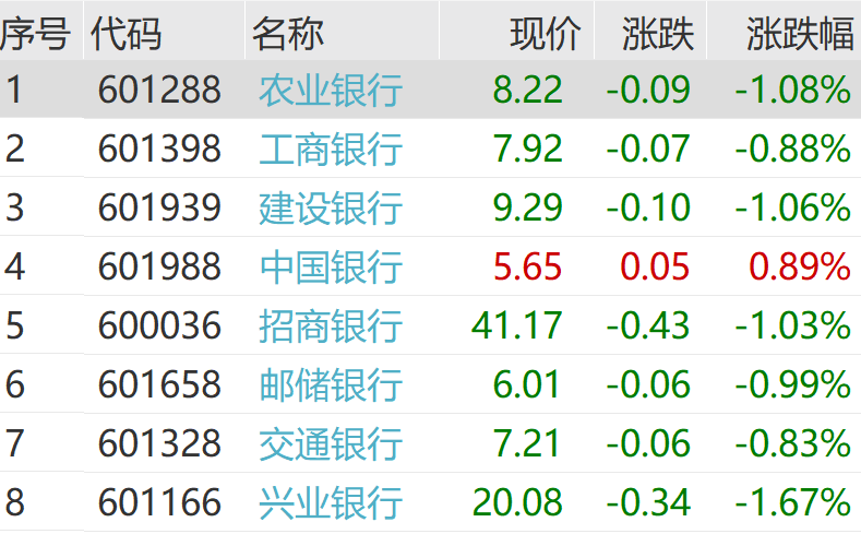 国有大行方面,农业银行、建设银行跌超1%。