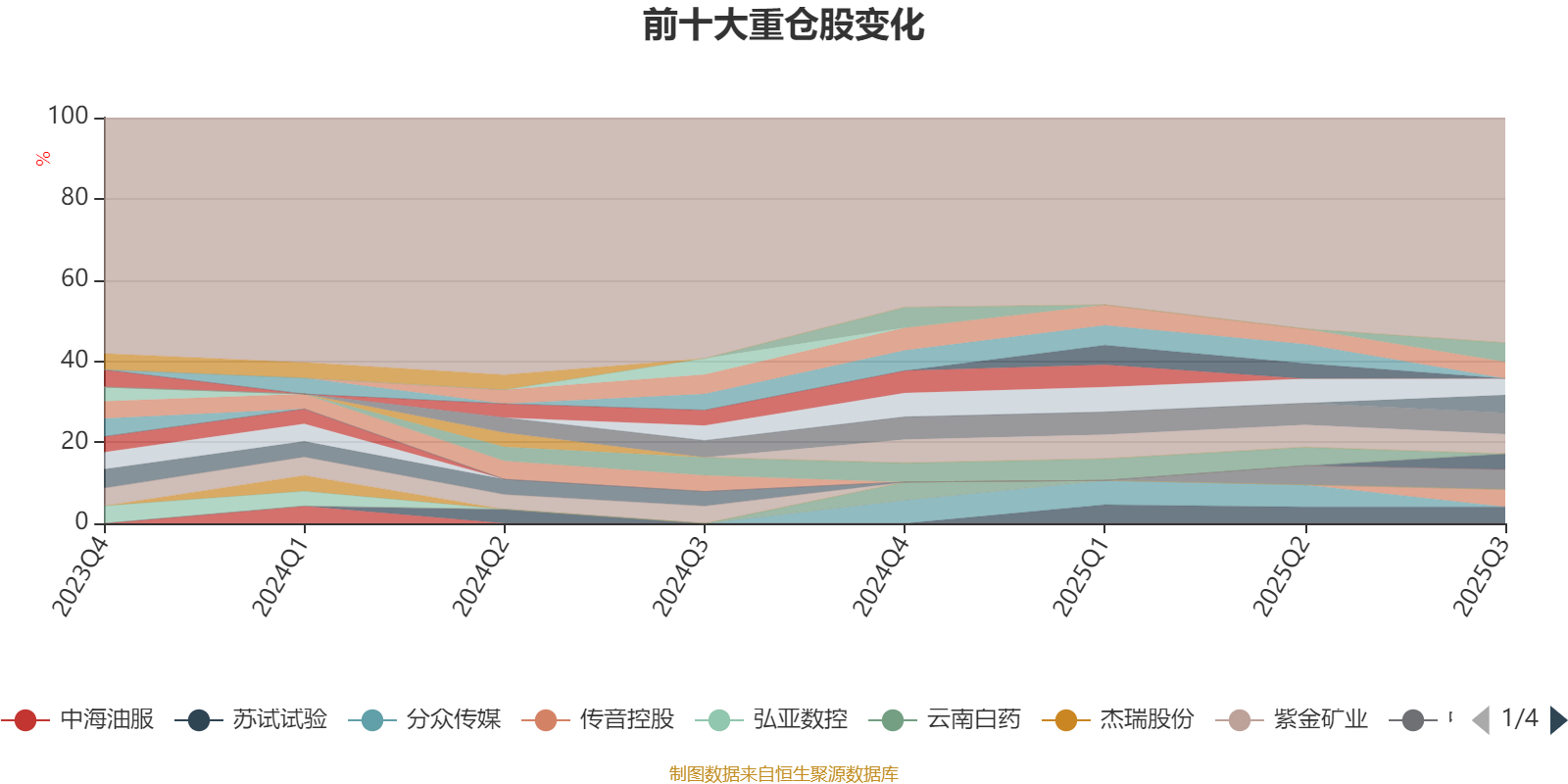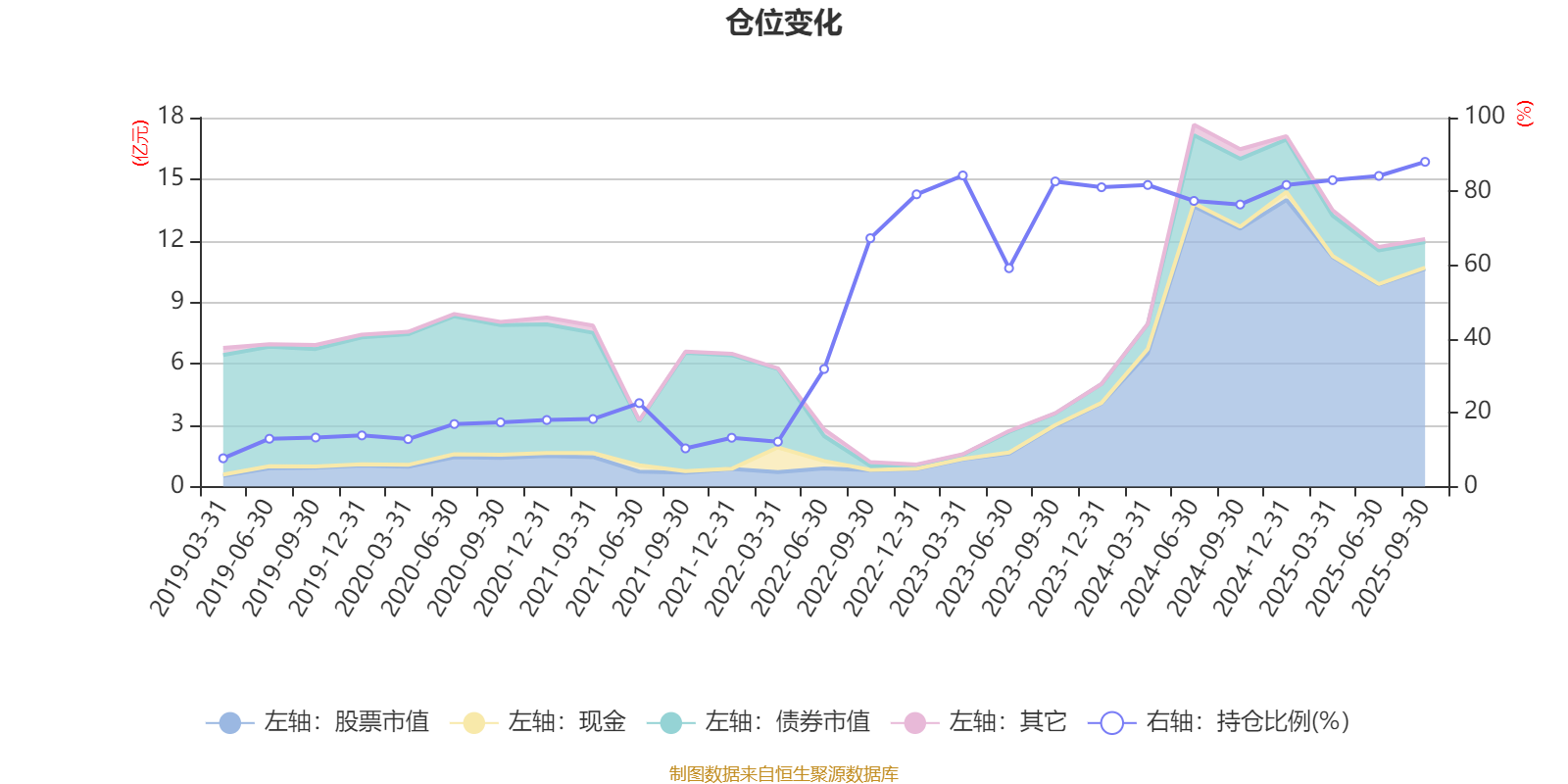 据定期报告数据统计,近三年平均股票仓位为79.93%,同类平均为72.28%。2025年三季度末基金达到88.01%的最高仓位,2019年一季度末最低,为7.67%。