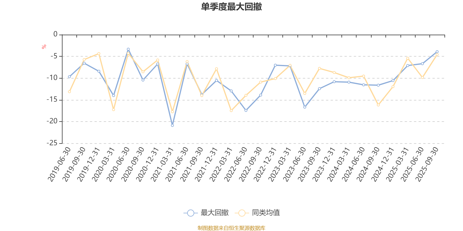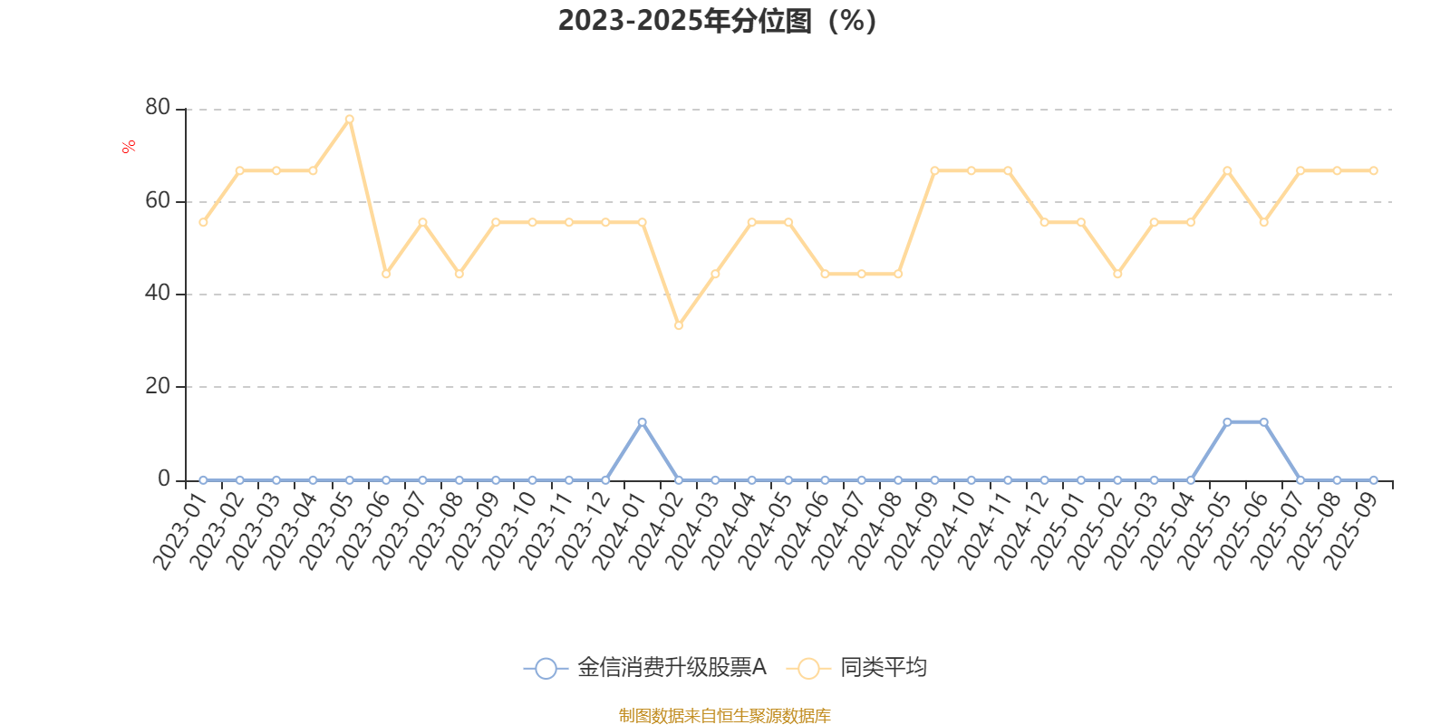 通过所选区间该基金净值增长率分位图,可以观察该基金与同类基金业绩比较情况。图为坐标原点到区间内某时点的净值增长率在同类基金中的分位数。
