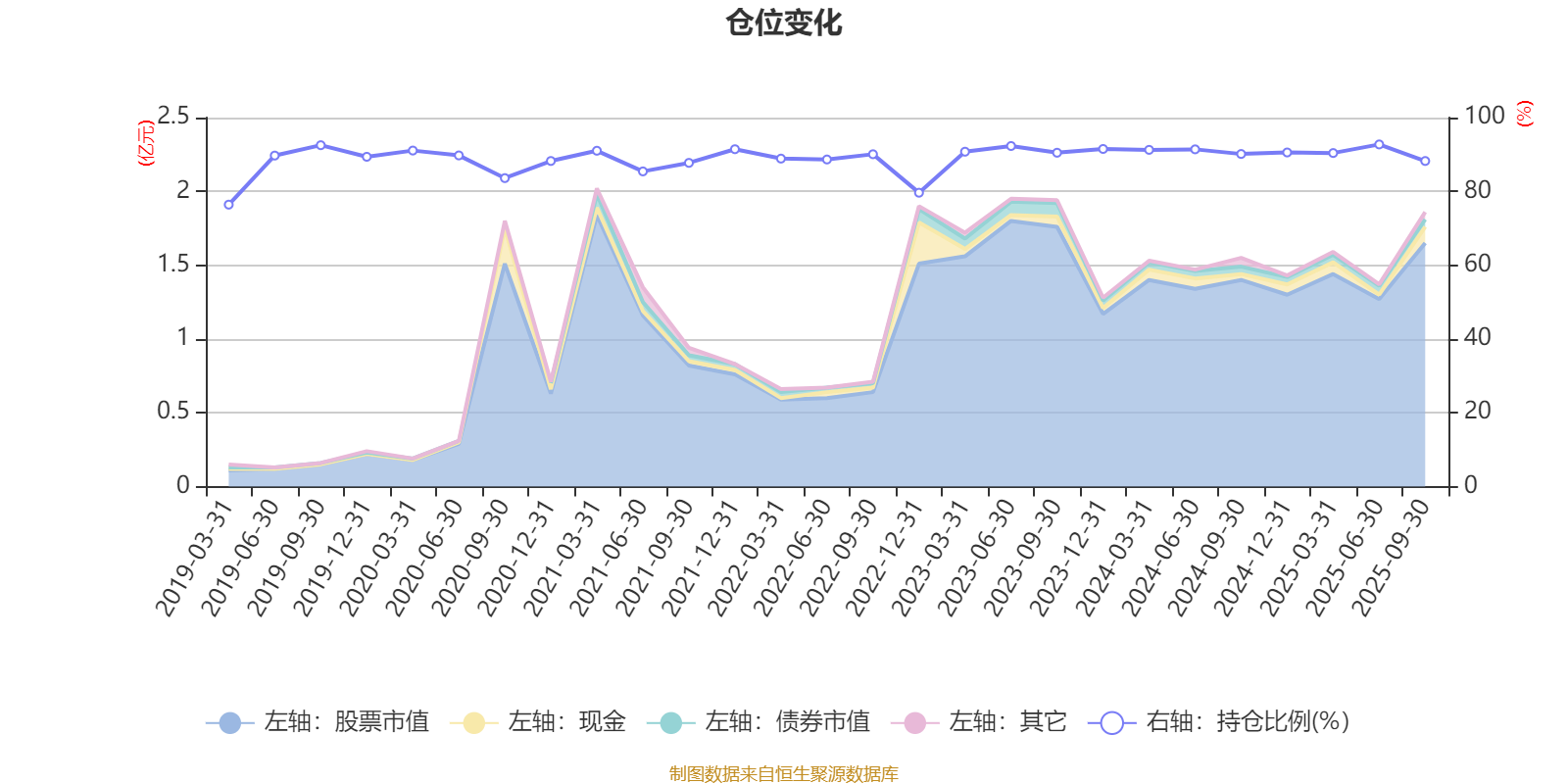 据定期报告数据统计,近三年平均股票仓位为89.95%,同类平均为89.52%。2025年上半年末基金达到92.73%的最高仓位,2019年一季度末最低,为76.41%。