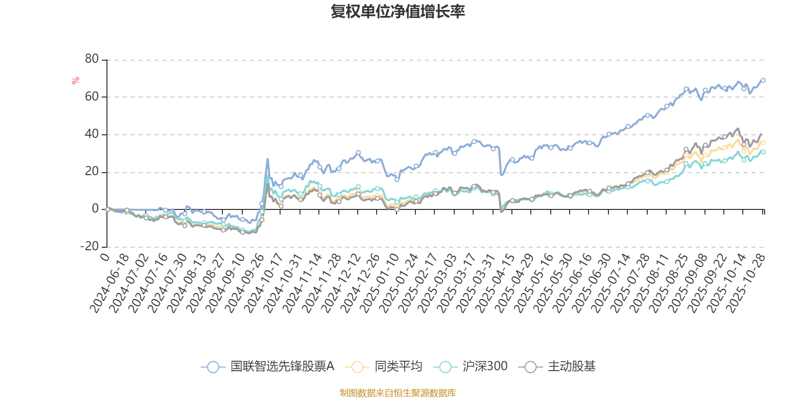 截至10月28日,国联智选先锋股票A近三个月复权单位净值增长率为12.43%,位于同类可比基金63/121;近半年复权单位净值增长率为33.14%,位于同类可比基金48/121;近一年复权单位净值增长率为40.97%,位于同类可比基金22/115。