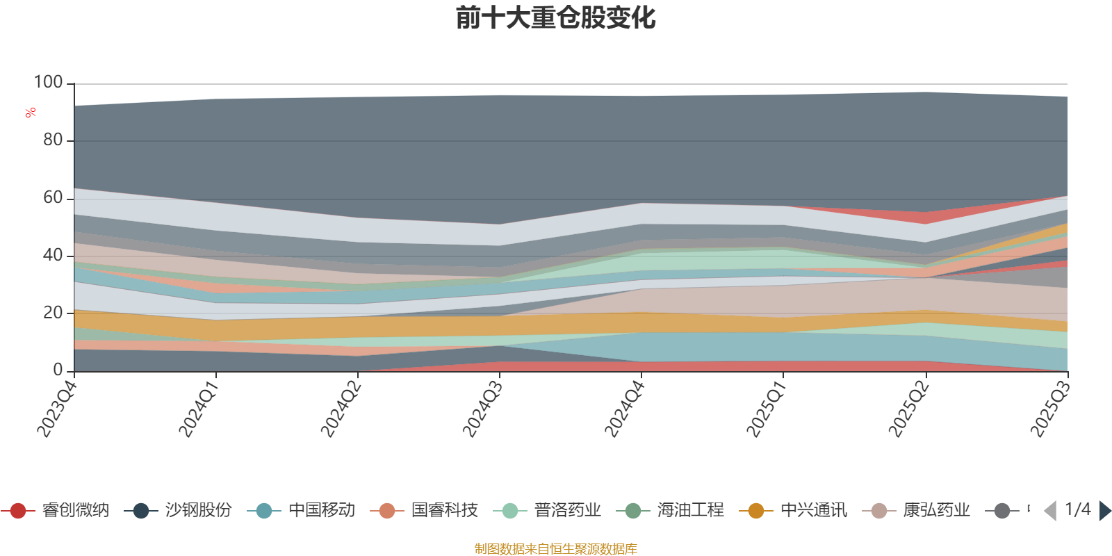该基金持股集中度较高,且持股标的较为稳定。截至2025年三季度末,基金重仓股分别是康弘药业、中国移动、中国海油、普洛药业、华勤技术、广深铁路、久立特材、圆通速递、中兴通讯、中国出版、中国海洋石油、广深铁路股份。