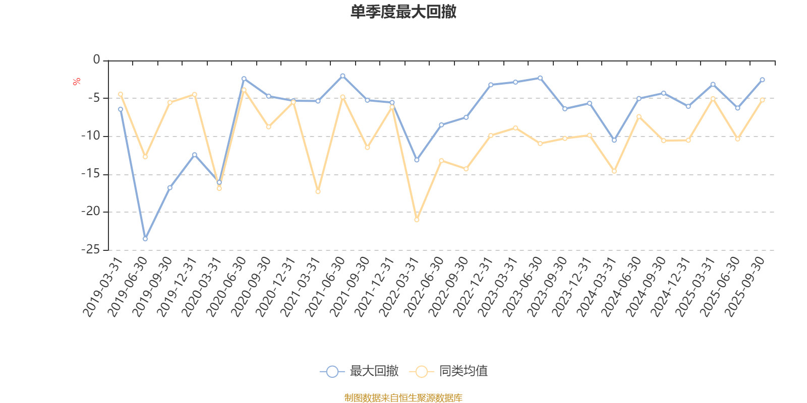 截至10月27日,基金近三年最大回撤为17.15%,同类可比基金排名2/124。单季度最大回撤出现在2019年二季度,为23.51%。