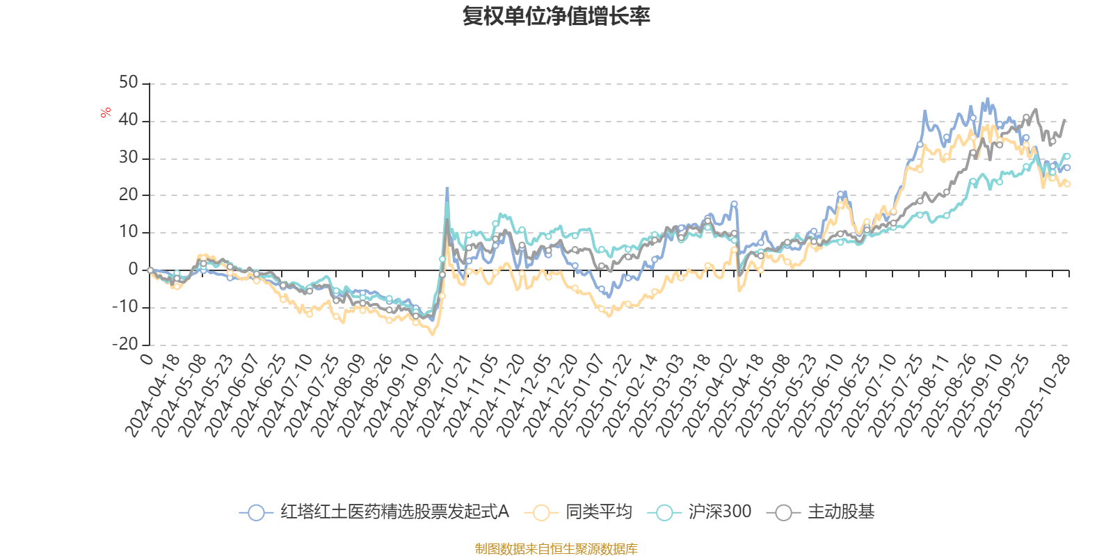 截至10月28日,红塔红土医药精选股票发起式A近三个月复权单位净值增长率为-6.72%,位于同类可比基金34/57;近半年复权单位净值增长率为21.07%,位于同类可比基金30/57;近一年复权单位净值增长率为19.52%,位于同类可比基金33/55。