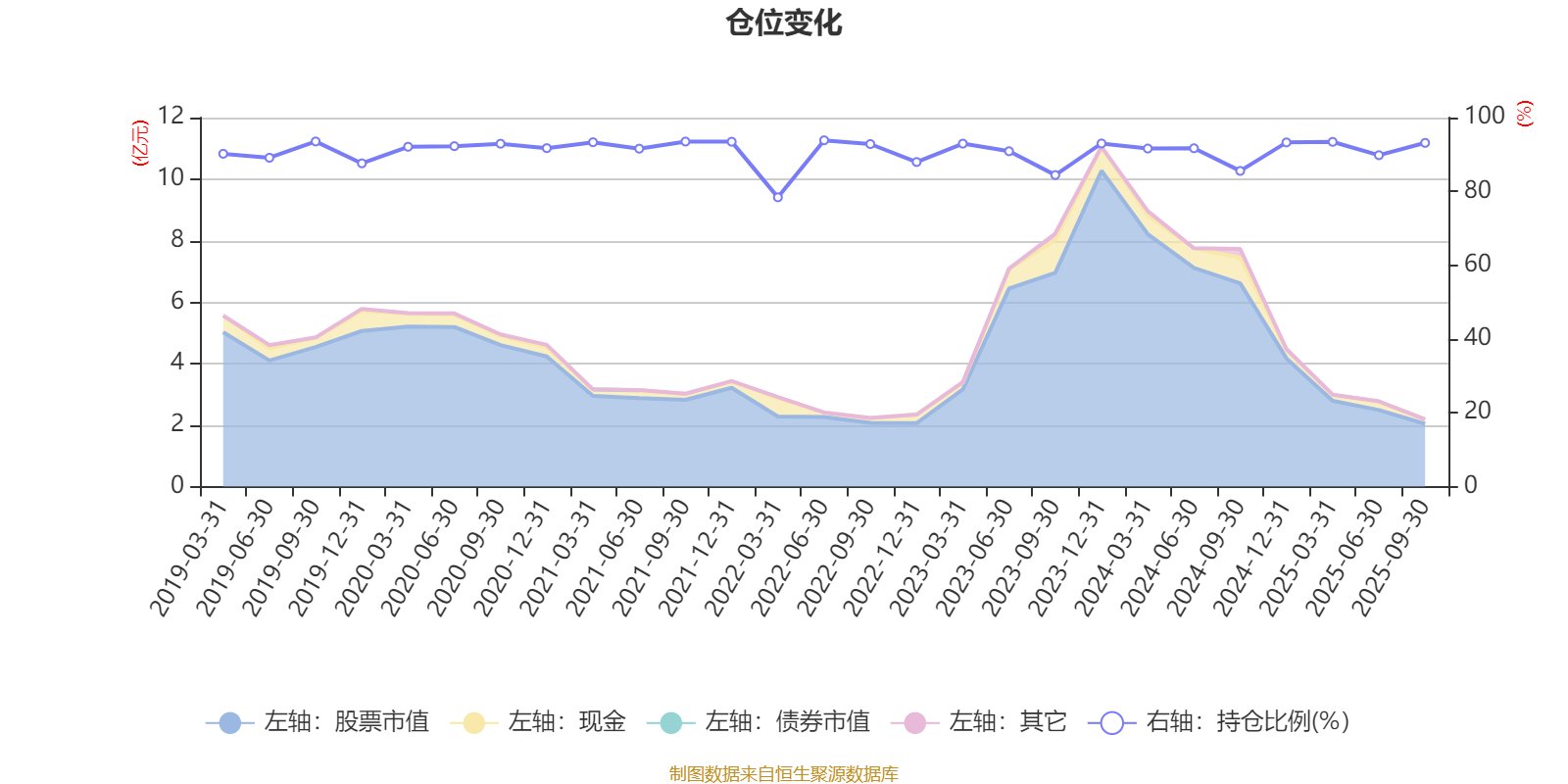 据定期报告数据统计,近三年平均股票仓位为90.64%,同类平均为88.27%。2022年上半年末基金达到93.85%的最高仓位,2022年一季度末最低,为78.39%。