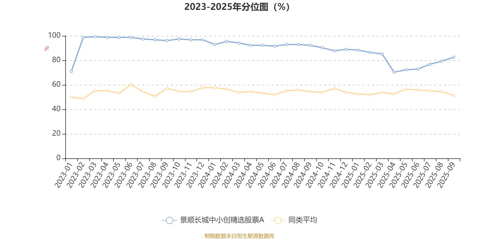 通过所选区间该基金净值增长率分位图,可以观察该基金与同类基金业绩比较情况。图为坐标原点到区间内某时点的净值增长率在同类基金中的分位数。