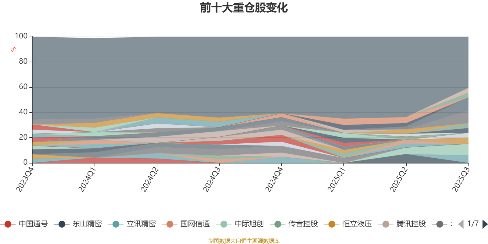 截至2025年三季度末,基金十大重仓股分别是新易盛、工业富联、中际旭创、立讯精密、生益科技、深南电路、兆易创新、歌尔股份、浙江荣泰、明阳智能。