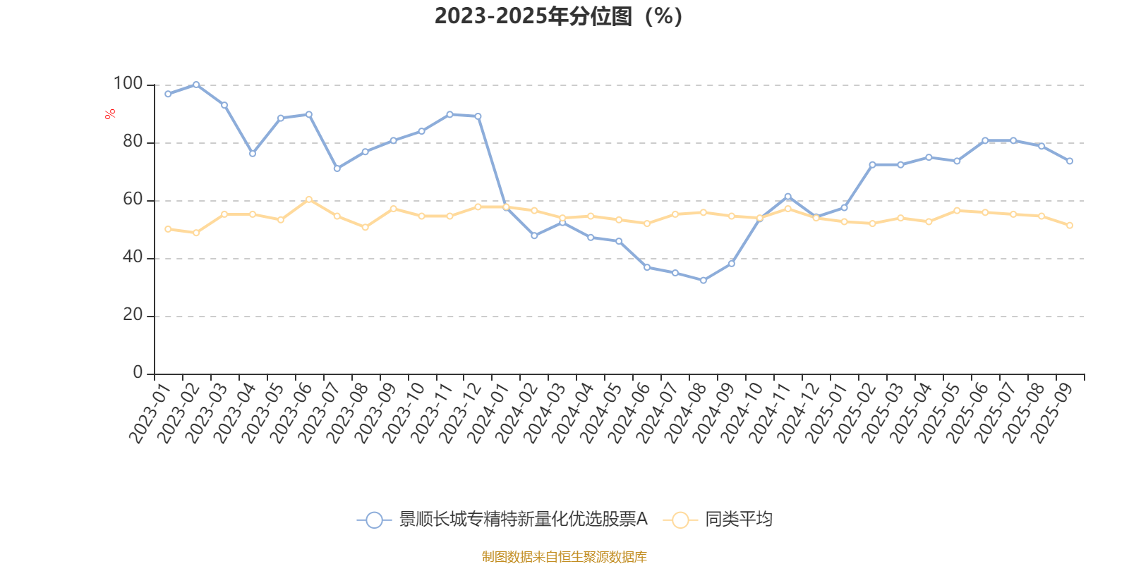 通过所选区间该基金净值增长率分位图,可以观察该基金与同类基金业绩比较情况。图为坐标原点到区间内某时点的净值增长率在同类基金中的分位数。