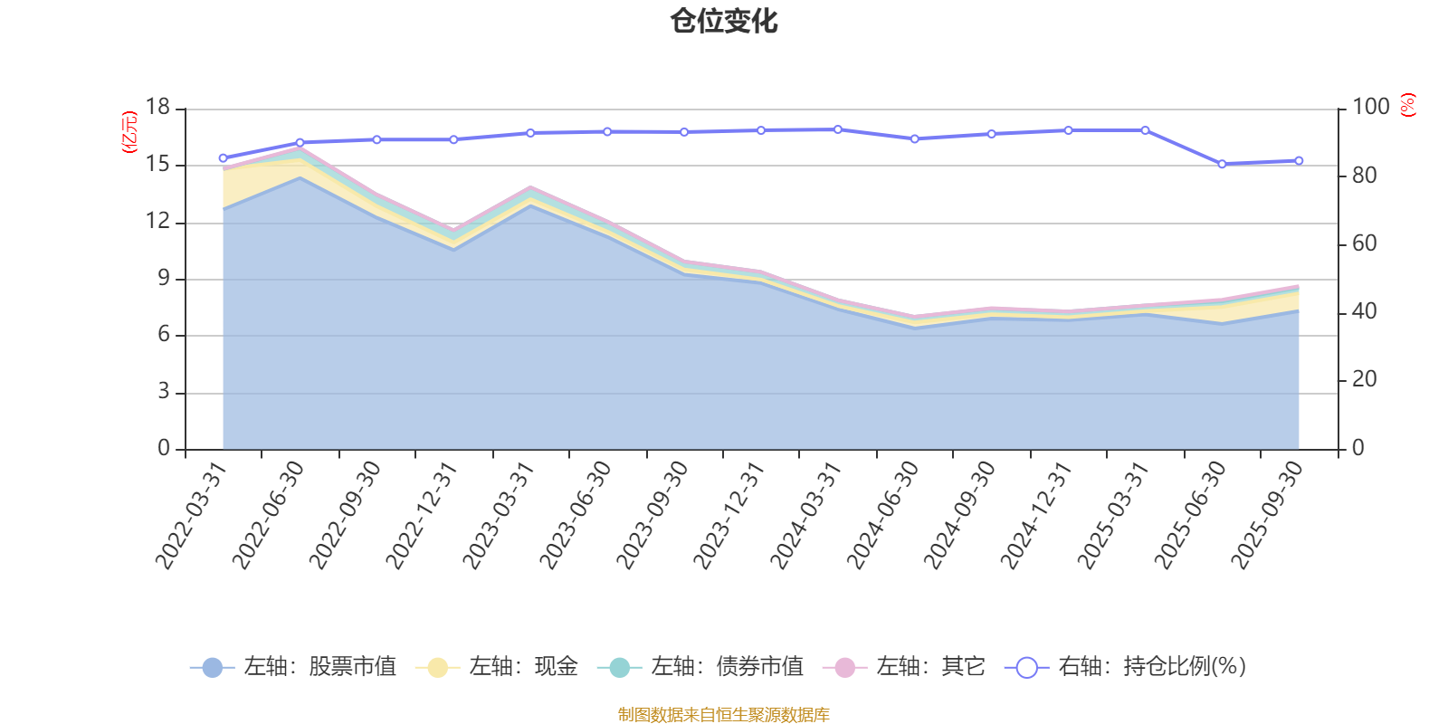 据定期报告数据统计,近三年平均股票仓位为91.41%,同类平均为88.27%。2024年一季度末基金达到93.9%的最高仓位,2025年上半年末最低,为83.74%。