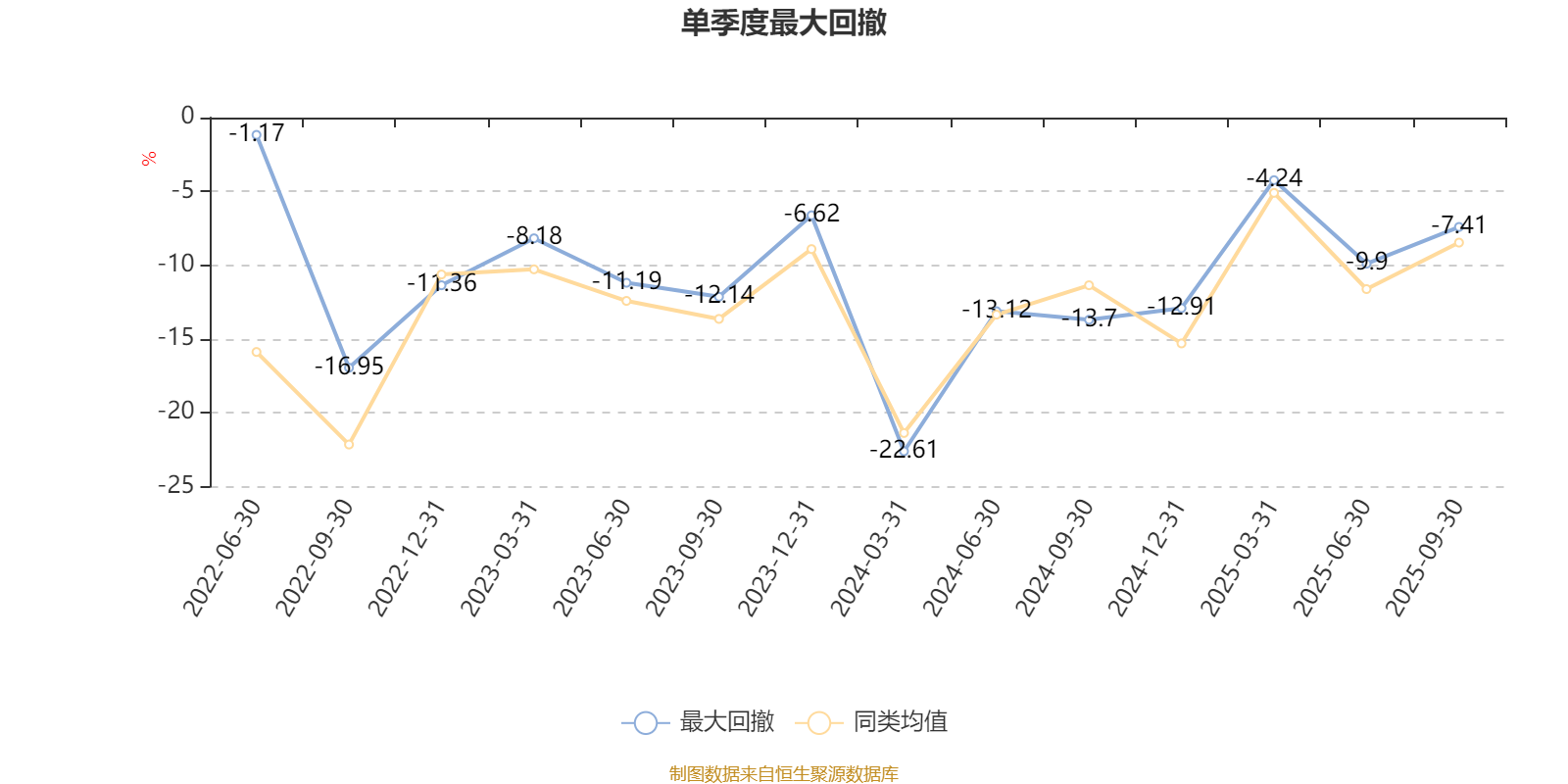 截至10月27日,基金近三年最大回撤为28.7%,同类可比基金排名2/48。单季度最大回撤出现在2024年一季度,为22.61%。