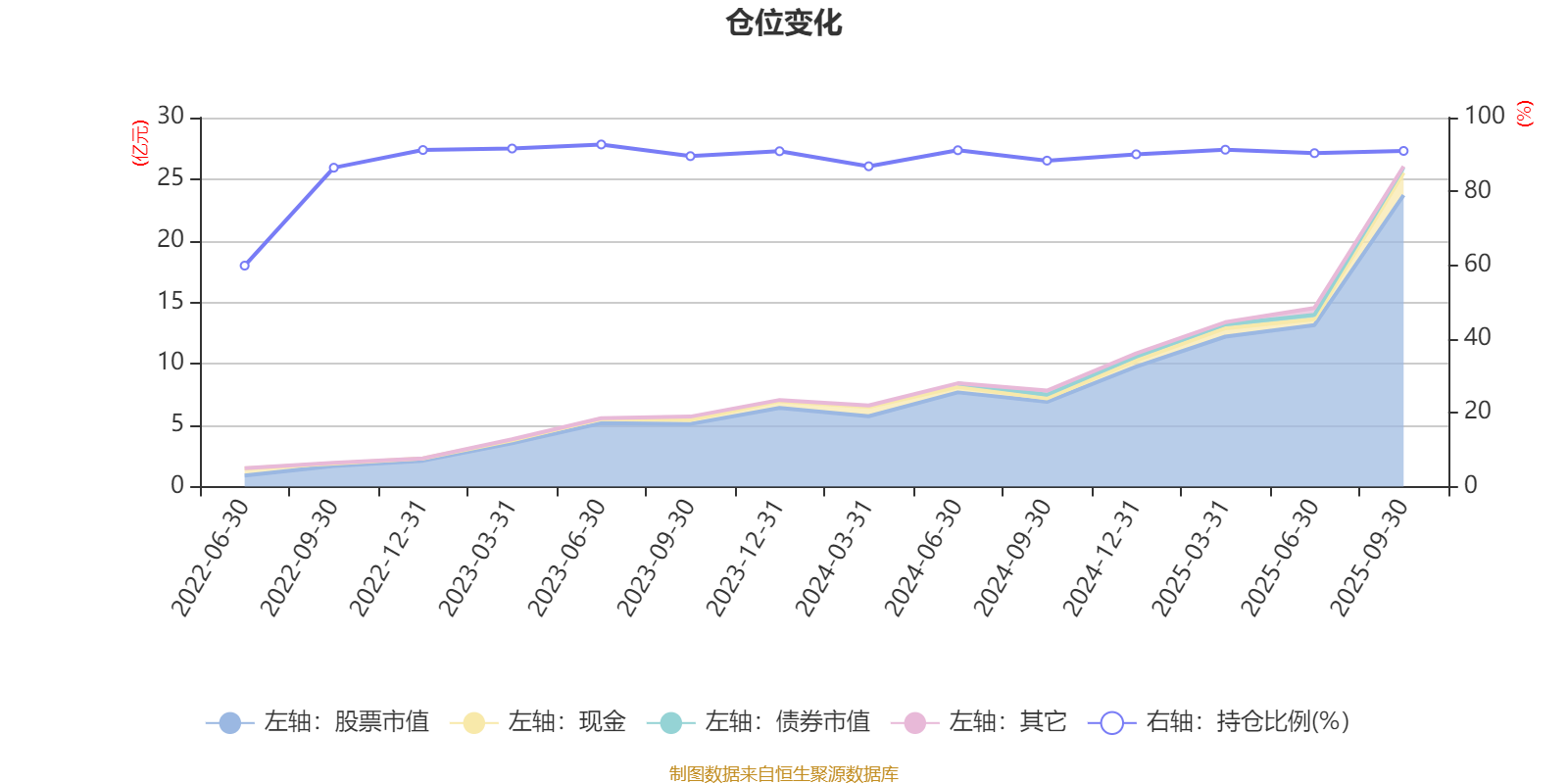 据定期报告数据统计,近三年平均股票仓位为90.42%,同类平均为88.38%。2023年上半年末基金达到92.72%的最高仓位,2022年上半年末最低,为59.88%。