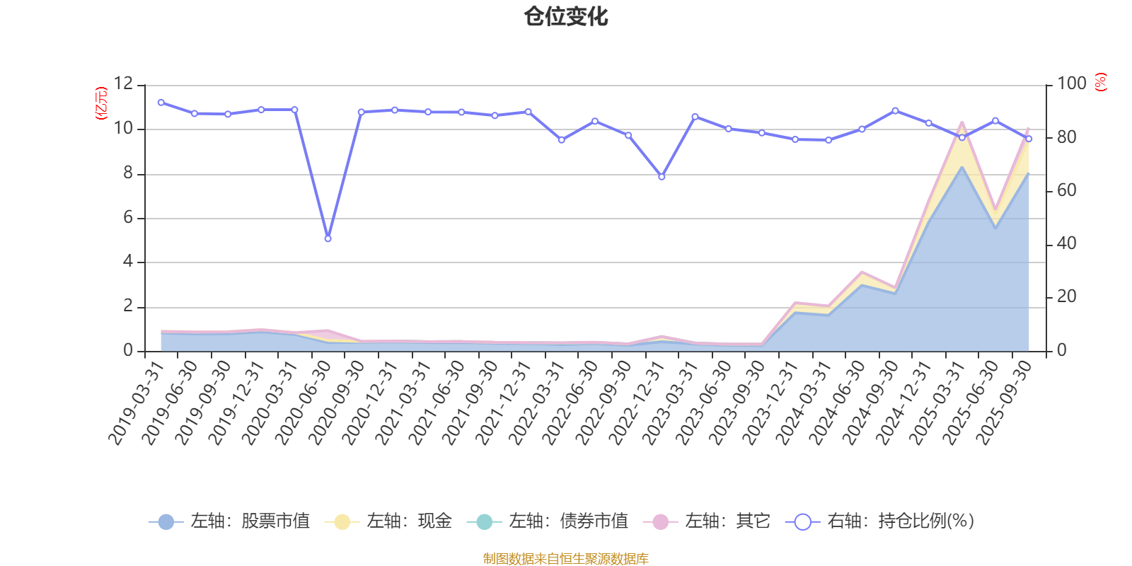 据定期报告数据统计,近三年平均股票仓位为81.99%,同类平均为88.29%。2019年一季度末基金达到93.41%的最高仓位,2020年上半年末最低,为42.3%。