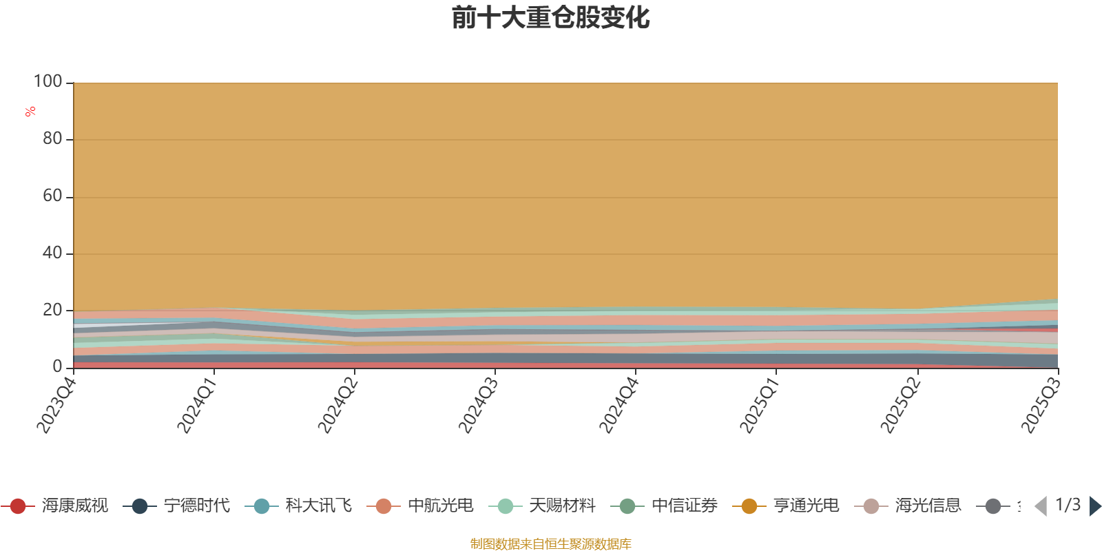 且持股标的较为稳定。截至2025年三季度末,基金十大重仓股分别是宁德时代、海光信息、浪潮信息、北方华创、中航光电、天赐材料、华大九天、澜起科技、中芯国际、华友钴业。