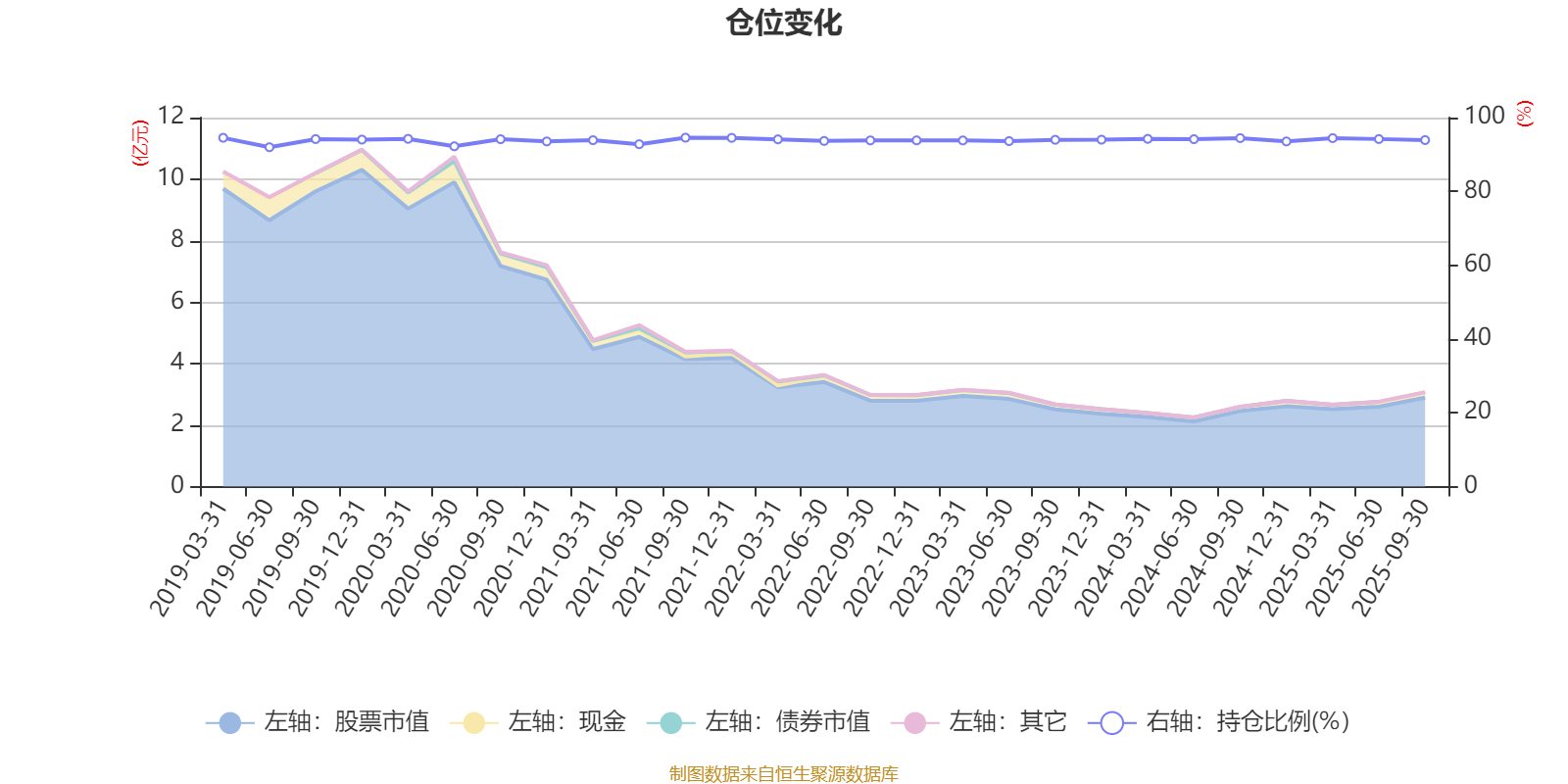 据定期报告数据统计,基金股票仓位长期保持较高水平,近三年平均股票仓位为94.02%,同类平均为88.27%。2021年三季度末基金达到94.56%的最高仓位,2019年上半年末最低,为91.97%。