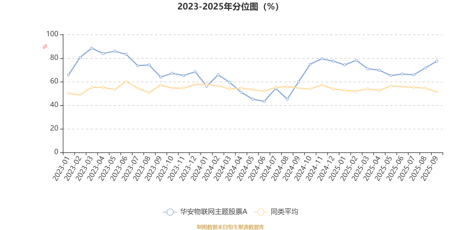 通过所选区间该基金净值增长率分位图,可以观察该基金与同类基金业绩比较情况。图为坐标原点到区间内某时点的净值增长率在同类基金中的分位数。