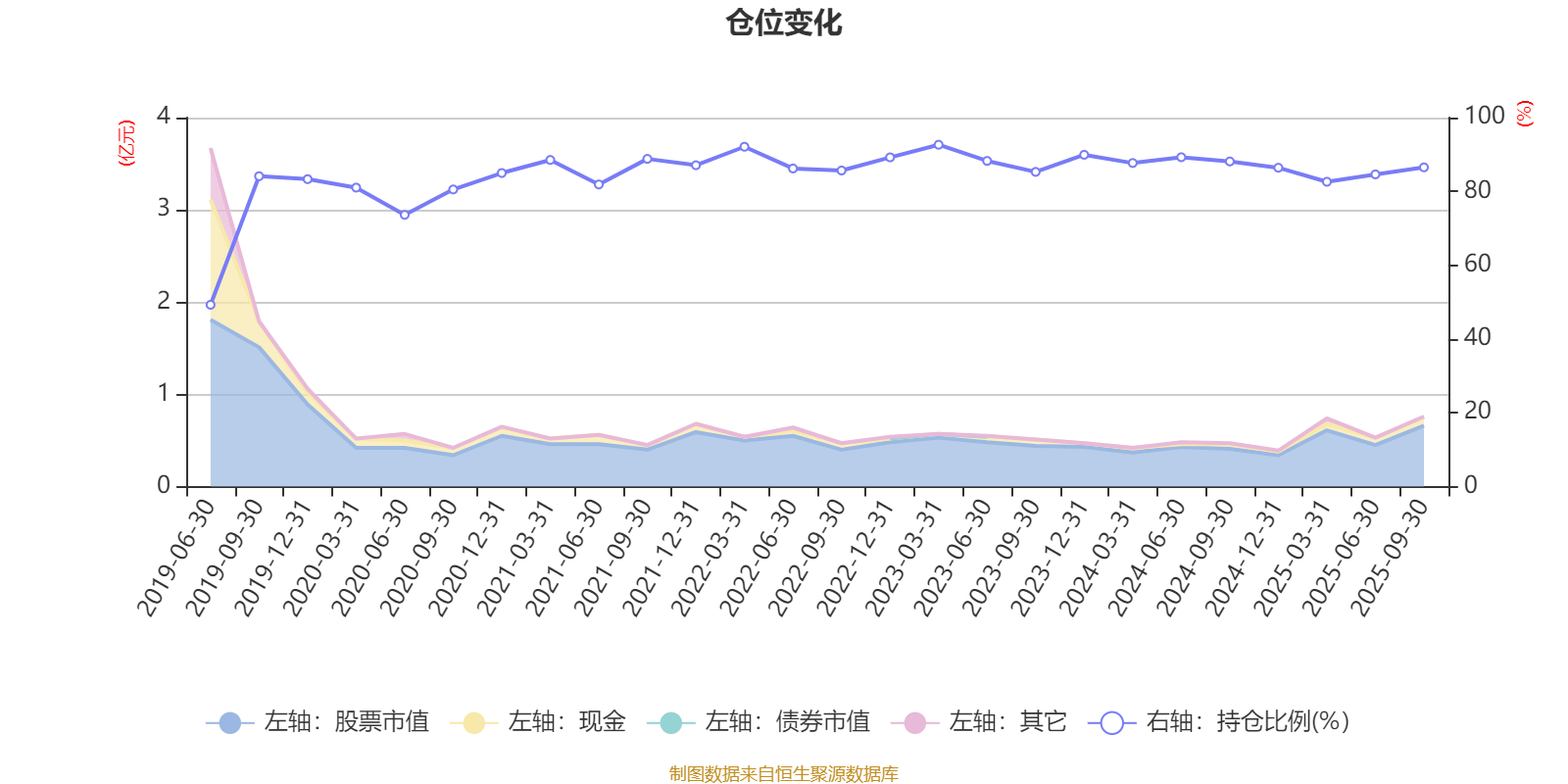 据定期报告数据统计,近三年平均股票仓位为87.55%,同类平均为88.23%。2023年一季度末基金达到92.64%的最高仓位,2019年上半年末最低,为49.27%。