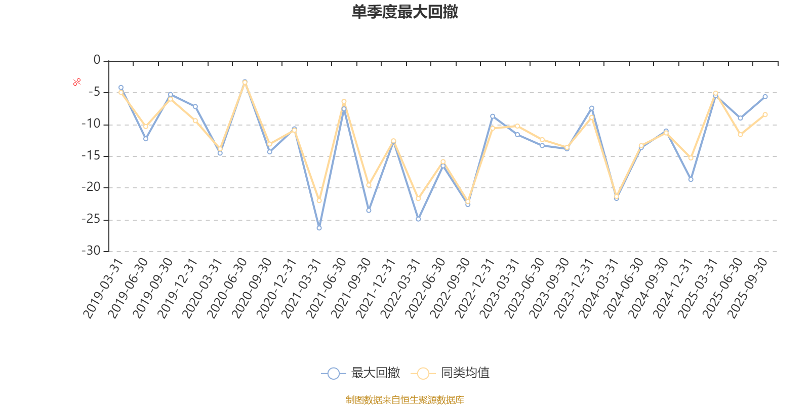 截至10月27日,基金近三年最大回撤为42.43%,同类可比基金排名32/48。单季度最大回撤出现在2021年一季度,为26.32%。