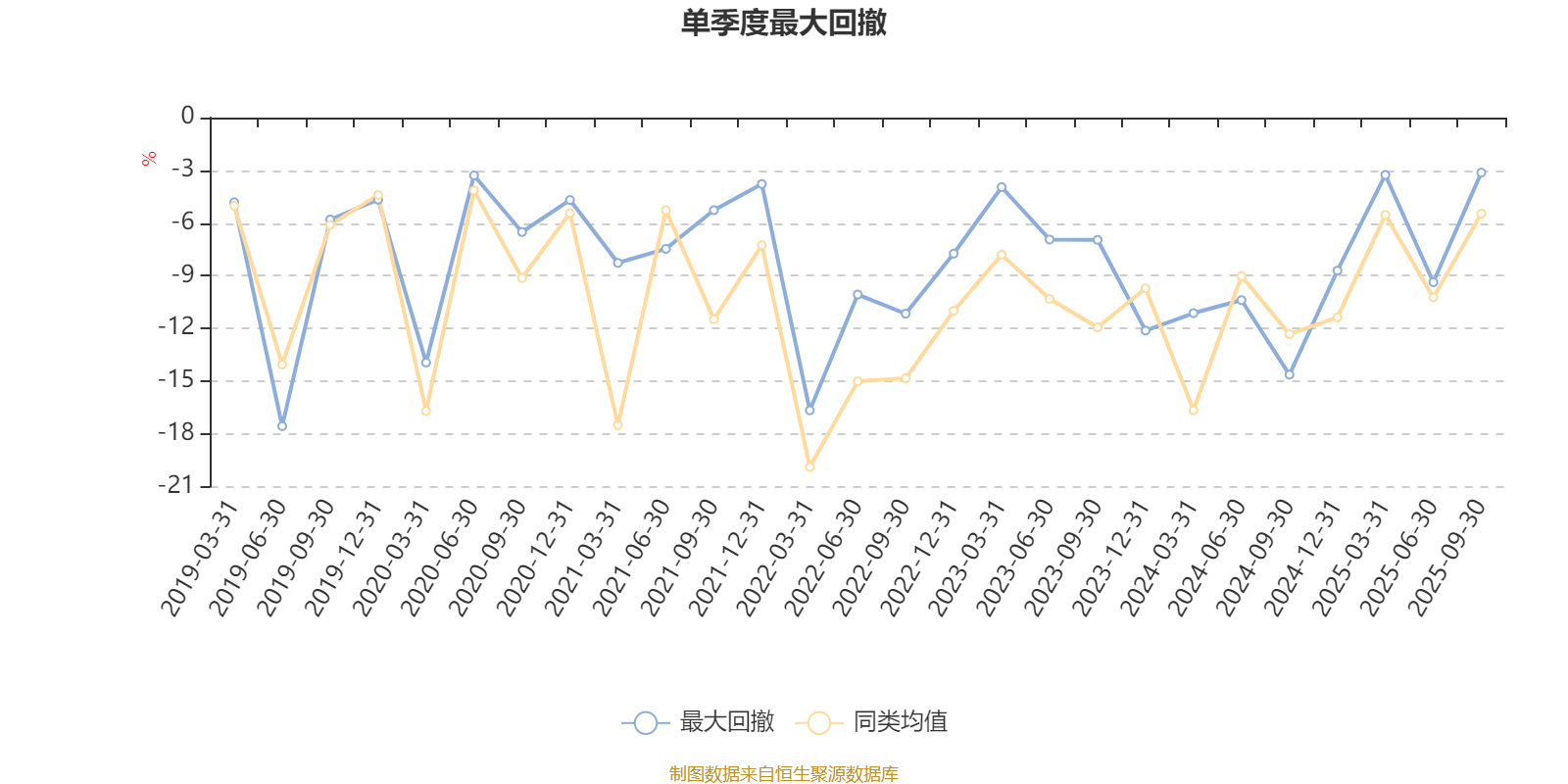 截至10月27日,基金近三年最大回撤为24.63%,同类可比基金排名17/87。单季度最大回撤出现在2019年二季度,为17.56%。