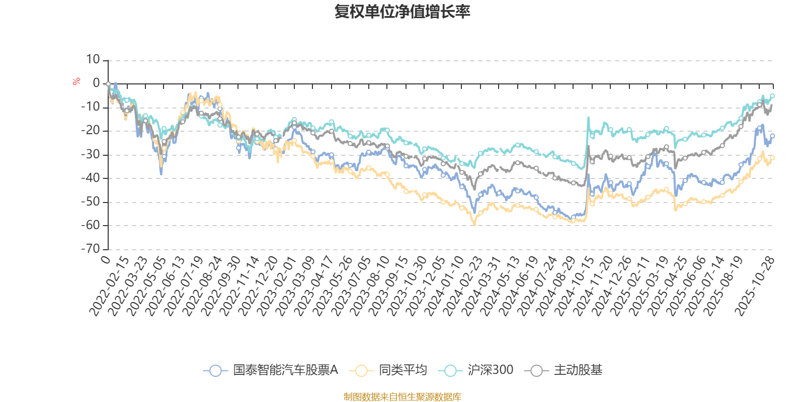 截至10月28日,国泰智能汽车股票A近三个月复权单位净值增长率为27.75%,位于同类可比基金16/39;近半年复权单位净值增长率为32.72%,位于同类可比基金27/39;近一年复权单位净值增长率为37.22%,位于同类可比基金13/38;近三年复权单位净值增长率为14.18%,位于同类可比基金10/29。