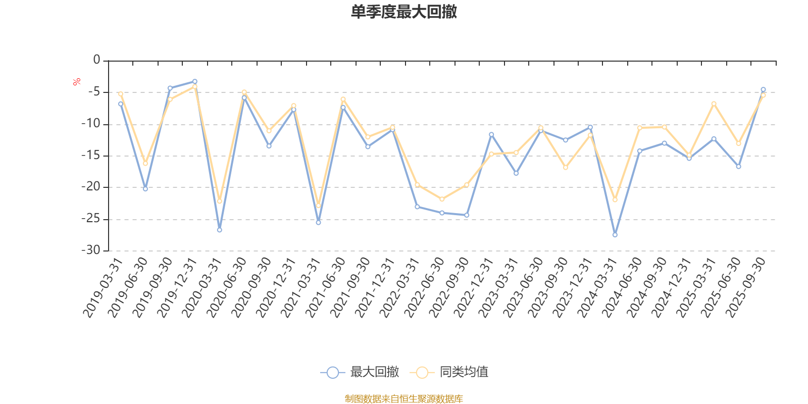 截至10月27日,基金近三年最大回撤为48.29%,同类可比基金排名16/29。单季度最大回撤出现在2024年一季度,为27.49%。
