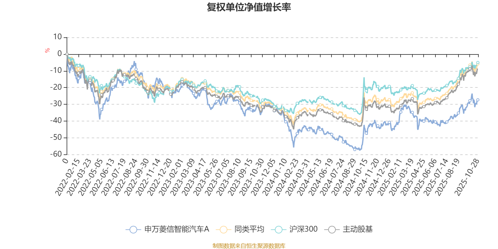 截至10月28日,申万菱信智能汽车A近三个月复权单位净值增长率为16.14%,位于同类可比基金78/167;近半年复权单位净值增长率为21.47%,位于同类可比基金125/166;近一年复权单位净值增长率为24.45%,位于同类可比基金103/164;近三年复权单位净值增长率为-8.02%,位于同类可比基金142/156。