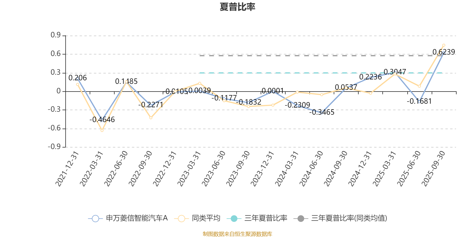 截至9月30日,基金近三年夏普比率为0.2969,位于同类可比基金123/156。
