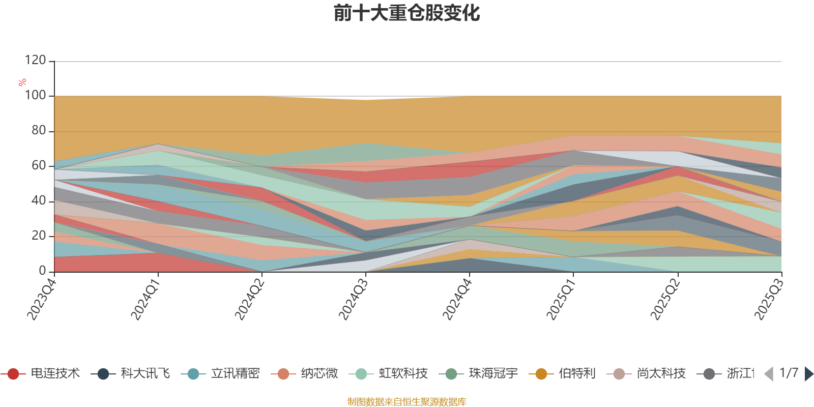 该基金持股集中度较高,近2年前十大重仓股集中度长期超过60%。截至2025年三季度末,基金十大重仓股分别是黑芝麻智能、虹软科技、锦江在线、华虹半导体、晶方科技、豪威集团、小鹏汽车-W、中芯国际、芯联集成、吉利汽车。