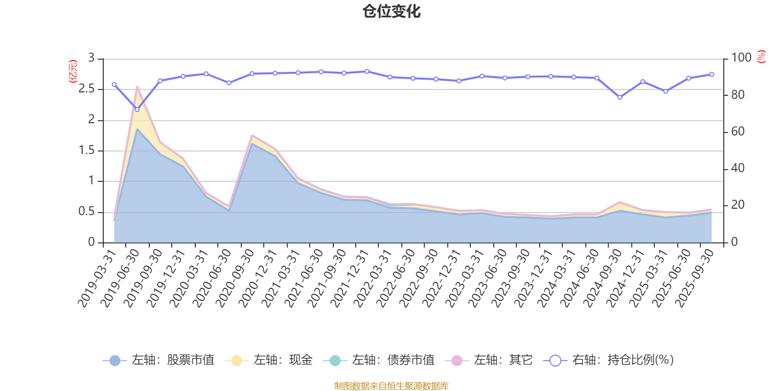 据定期报告数据统计,近三年平均股票仓位为88.13%,同类平均为88.23%。2021年末基金达到93.08%的最高仓位,2019年上半年末最低,为72.35%。