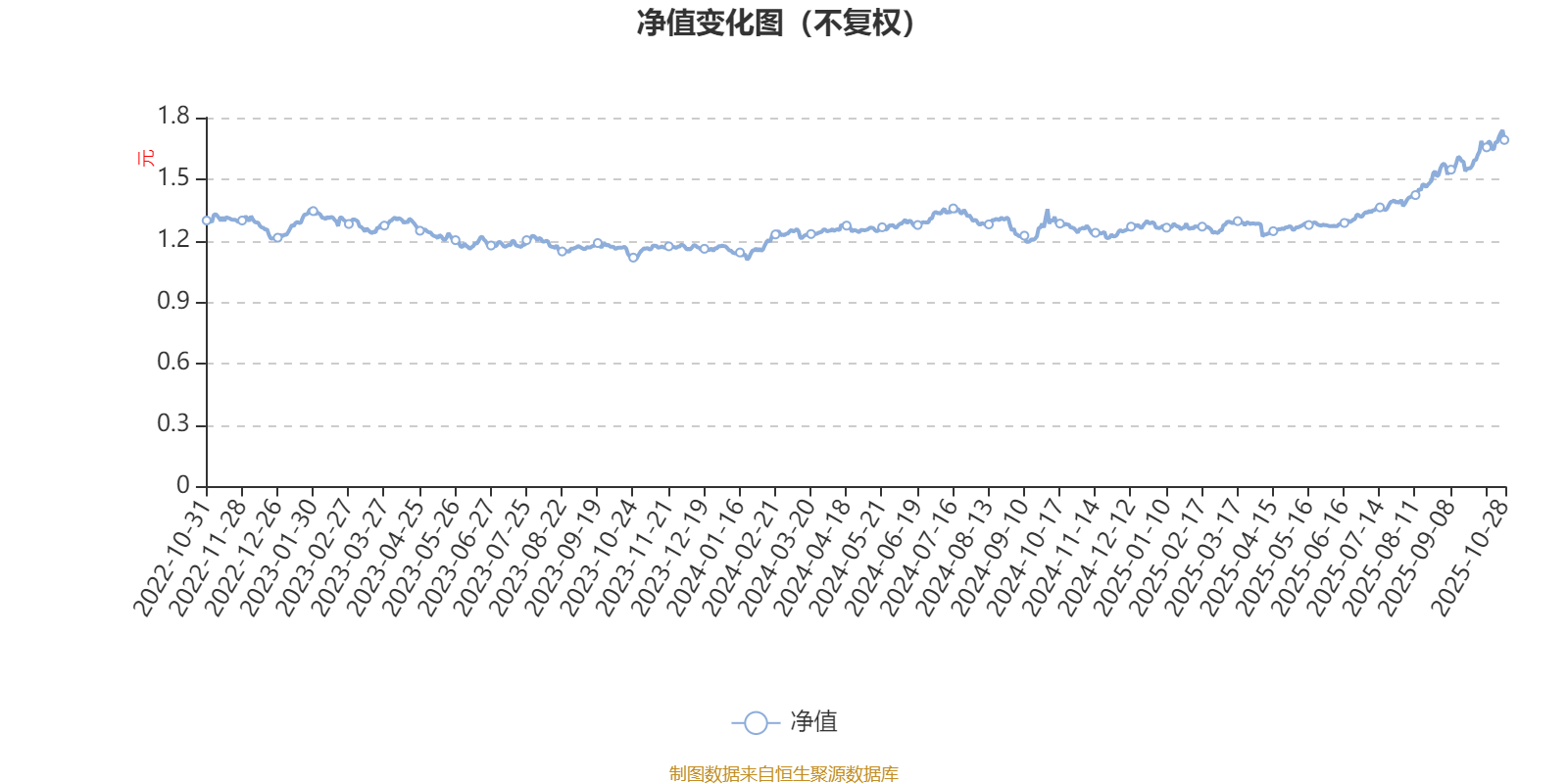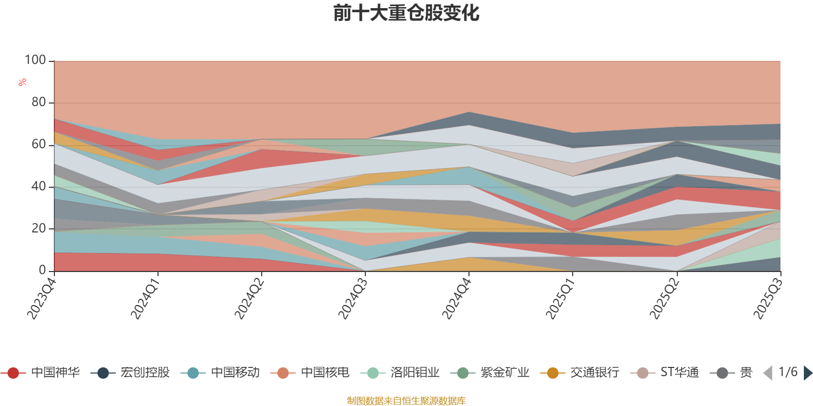 该基金持股集中度较高,近2年前十大重仓股集中度长期超过60%。截至2025年三季度末,基金十大重仓股分别是洛阳钼业、天山铝业、ST华通、云铝股份、中国平安、宏创控股、中国太保、金诚信、英科医疗、神火股份。