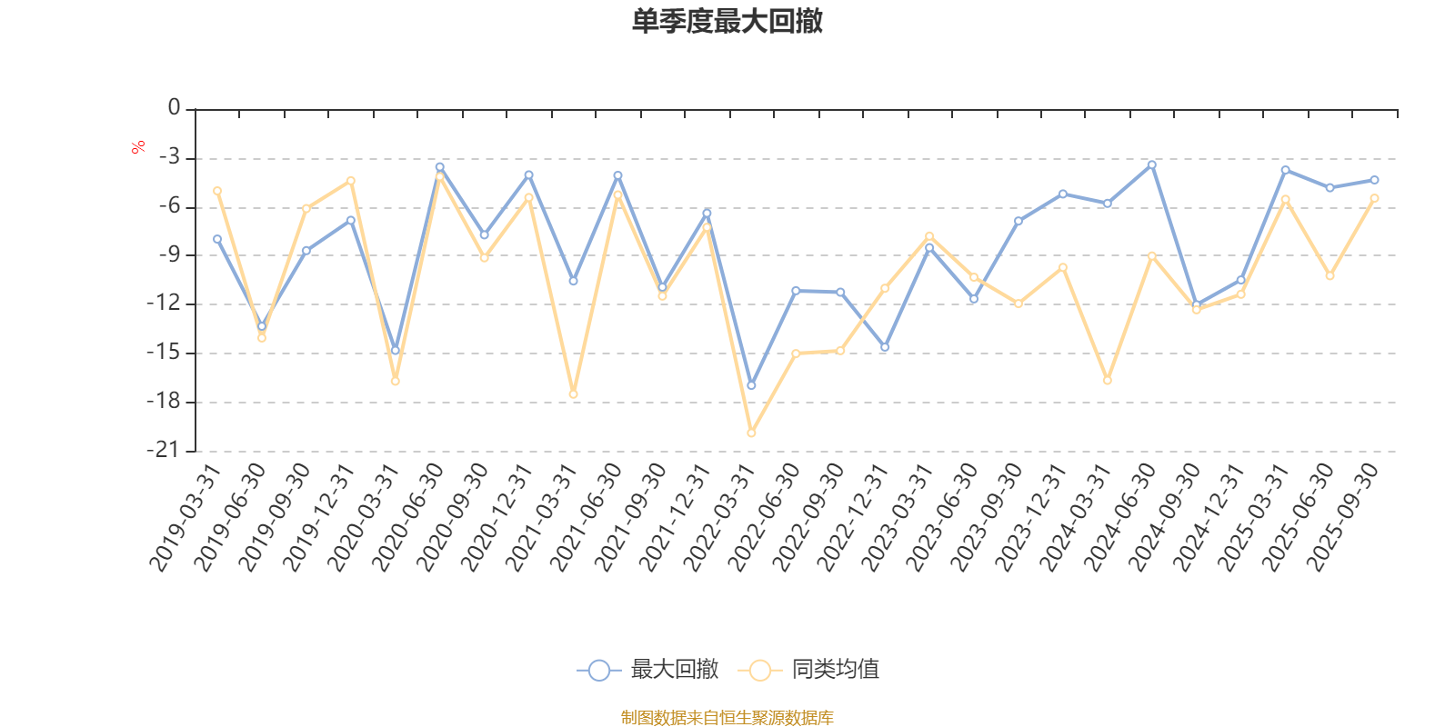 截至10月27日,基金近三年最大回撤为18.12%,同类可比基金排名3/87。单季度最大回撤出现在2022年一季度,为16.96%。