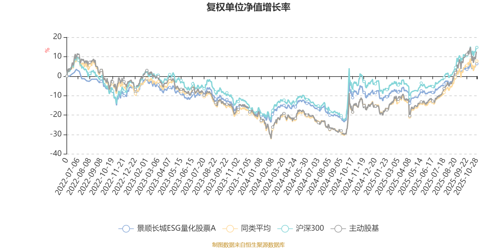 截至10月28日,景顺长城ESG量化股票A近三个月复权单位净值增长率为9.29%,位于同类可比基金76/121;近半年复权单位净值增长率为19.41%,位于同类可比基金85/121;近一年复权单位净值增长率为15.29%,位于同类可比基金81/115;近三年复权单位净值增长率为23.37%,位于同类可比基金44/87。