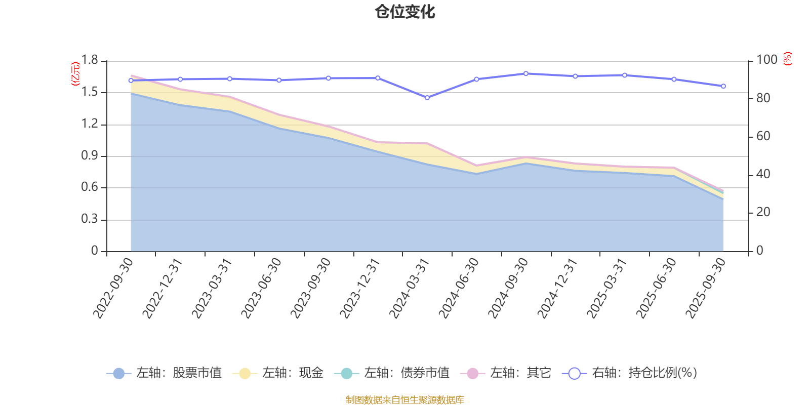 据定期报告数据统计,近三年平均股票仓位为89.83%,同类平均为88.23%。2024年三季度末基金达到93.3%的最高仓位,2024年一季度末最低,为80.62%。
