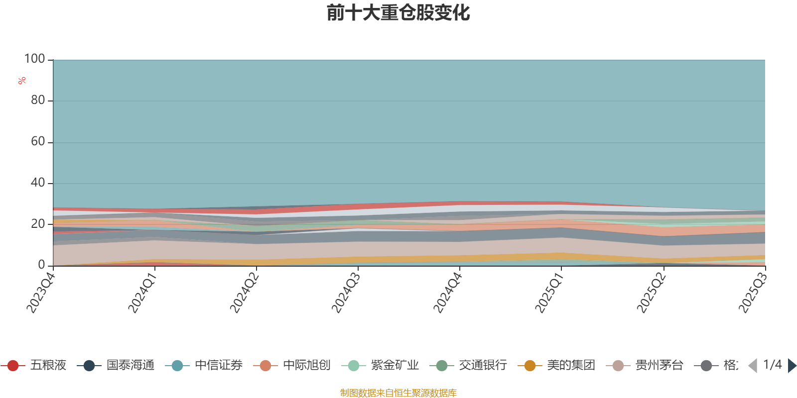 截至2025年三季度末,基金十大重仓股分别是贵州茅台、宁德时代、招商银行、美的集团、兴业银行、恒瑞医药、中际旭创、比亚迪、紫金矿业、工商银行。