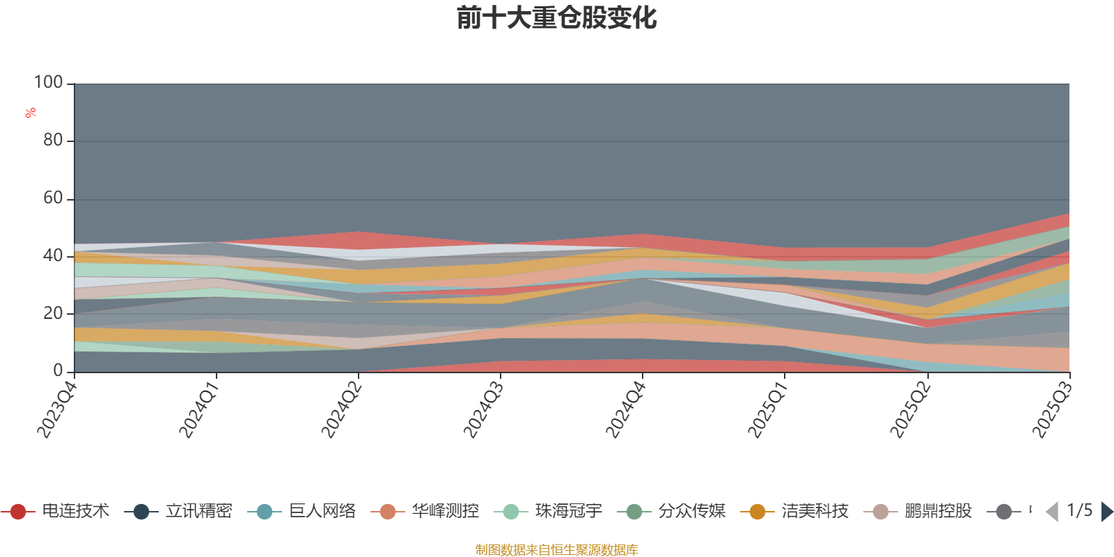 截至2025年三季度末,基金十大重仓股分别是北方华创、华峰测控、中微公司、华海清科、紫光国微、兆易创新、寒武纪、捷顺科技、芯源微、恺英网络。