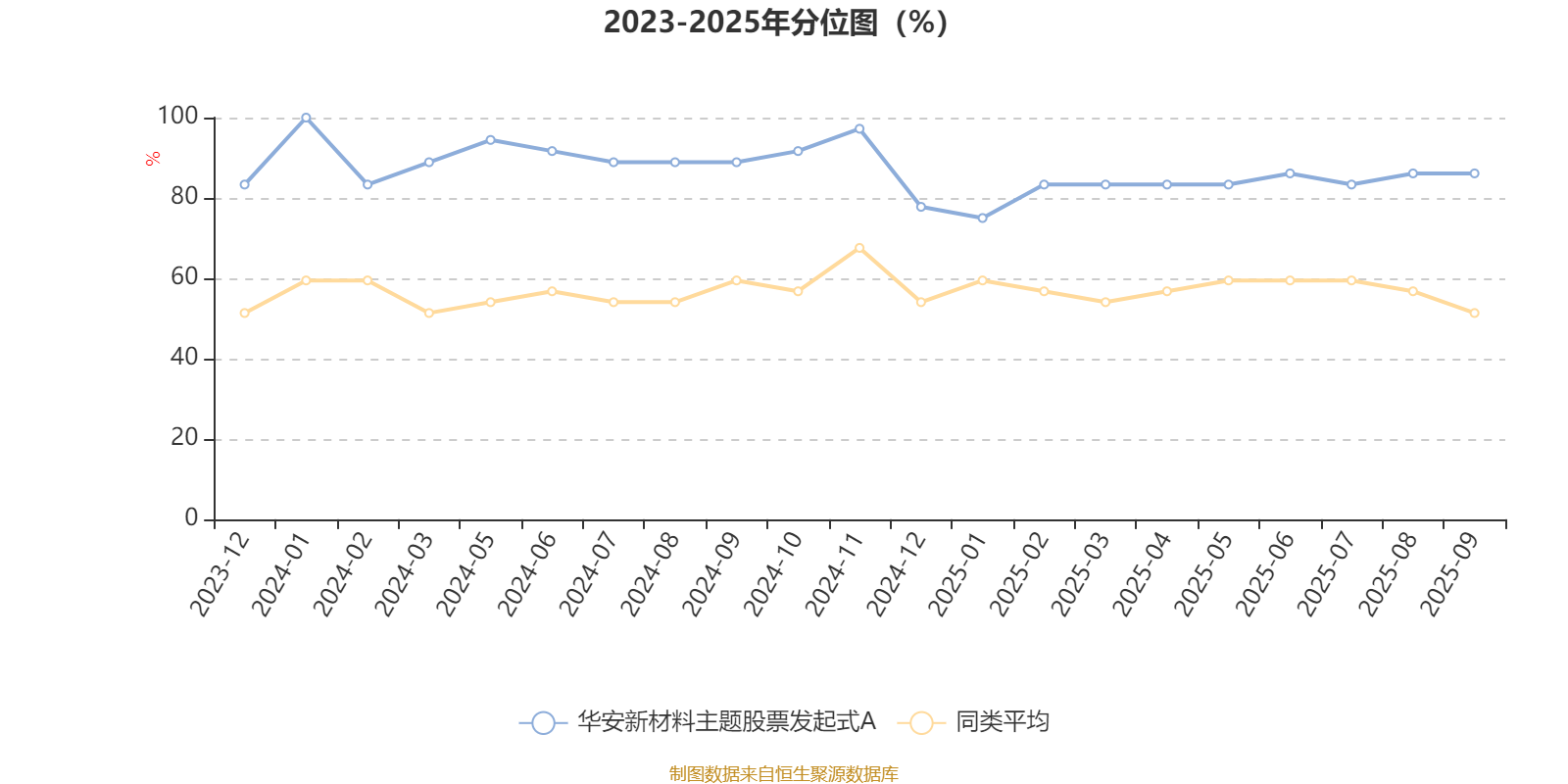 通过所选区间该基金净值增长率分位图,可以观察该基金与同类基金业绩比较情况。图为坐标原点到区间内某时点的净值增长率在同类基金中的分位数。