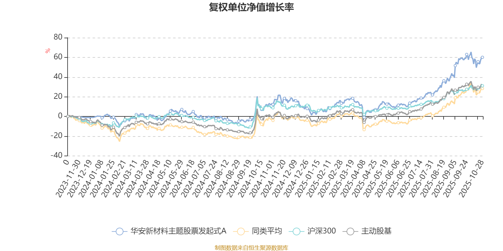 截至10月28日,华安新材料主题股票发起式A近三个月复权单位净值增长率为28.77%,位于同类可比基金14/39;近半年复权单位净值增长率为50.40%,位于同类可比基金11/39;近一年复权单位净值增长率为41.48%,位于同类可比基金9/38。