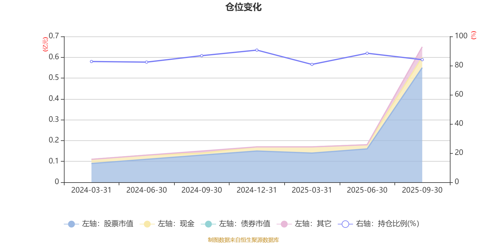 据定期报告数据统计,成立以来平均股票仓位为85.15%,同类平均为87.59%。2024年末基金达到90.64%的最高仓位,2025年一季度末最低,为80.82%。