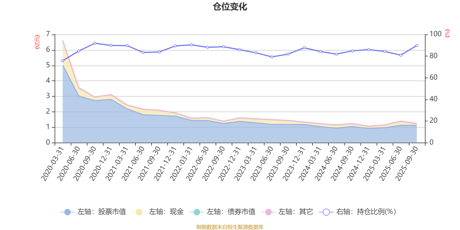 据定期报告数据统计,近三年平均股票仓位为84.19%,同类平均为88.38%。2020年三季度末基金达到91.91%的最高仓位,2020年一季度末最低,为75.77%。