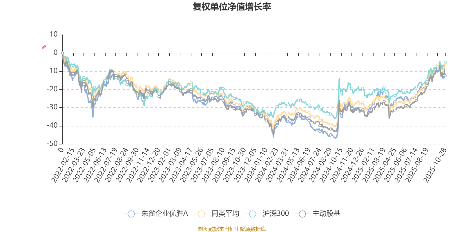 截至10月28日,朱雀企业优胜A近三个月复权单位净值增长率为8.26%,位于同类可比基金127/167;近半年复权单位净值增长率为19.37%,位于同类可比基金131/166;近一年复权单位净值增长率为21.21%,位于同类可比基金114/164;近三年复权单位净值增长率为15.64%,位于同类可比基金98/156。